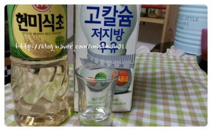 2) 식초 한 컵을 흘려 넣는다.