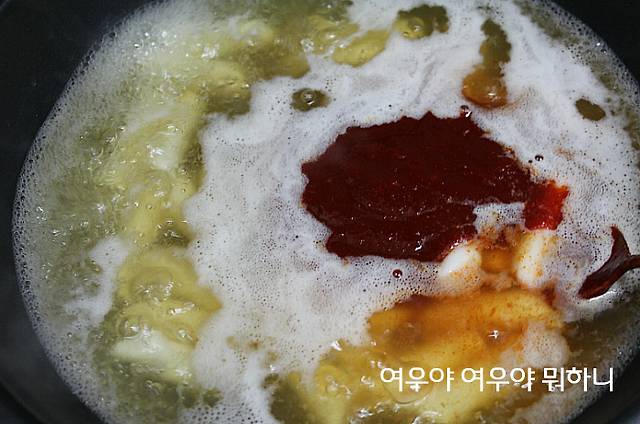국물이 끓으면 양념장을 넣어줍니다