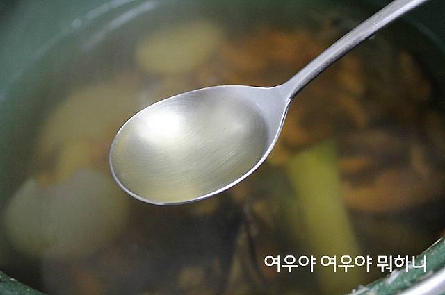 꽃소금이나 함초소금으로 국물간을 해줍니다