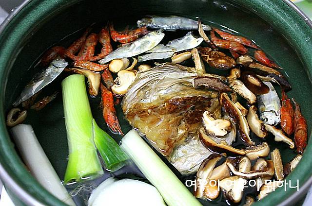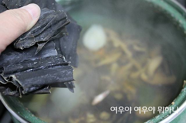 모든재료를 넣고 약불에서 30분간 끓여주고 마지막에 다시마를 넣고 8분후 건져내어여